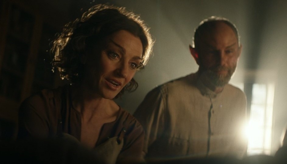 Picard ends the interview, clearly enraged by what he’s heard from the interviewer, and the action then cuts back to Dahj, who sees Picard’s interview on a screen and travels to find him. She’s clearly shaken, and despite the intrusion Picard welcomes her to his home. His Romulan assistants patch up her wound, and she’s invited to spend the night, but not before Picard is able to examine a necklace that she’s wearing. It’s a fairly plain silver necklace with two interlocking rings – I hadn’t actually noticed it until Picard asked for a closer look. Because the necklace was so plain I think this moment, of all the moments in Remembrance, felt forced. I understand it’s important to the plot, but I’m sure with a modicum of effort they could’ve made the necklace a little more visually interesting – as it is it looks like a piece of cheap costume jewellery from Claire’s Accessories! Again, however, this is really just a nitpick, and the necklace is only seen a handful of times across the episode so its appearance doesn’t really matter.