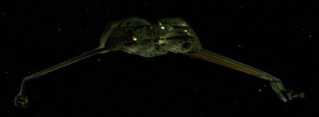Based loosely on the earlier Romulan Bird-of-Prey, the winged design captures the warrior philosophy of the Klingons perfectly. The small ship is incredibly powerful, armed to the teeth with disruptor cannons and photon torpedoes. The way the wings change position for combat or while at warp is clever, too, and the green colour scheme makes the craft stand out when compared to Federation ships.