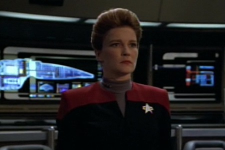 Somewhat ironically when considering her actions in Endgame, Janeway chooses the Gamma Quadrant route. Why? She’s fearful of the Borg, naturally. Whatever dangers and obstacles may await Voyager in the Gamma Quadrant, she tells her crew, Starfleet has known for years that the Borg’s home territory is the Delta Quadrant. Taking that path seems positively suicidal in comparison, so Voyager will instead head for the Gamma Quadrant terminus of the Bajoran wormhole.