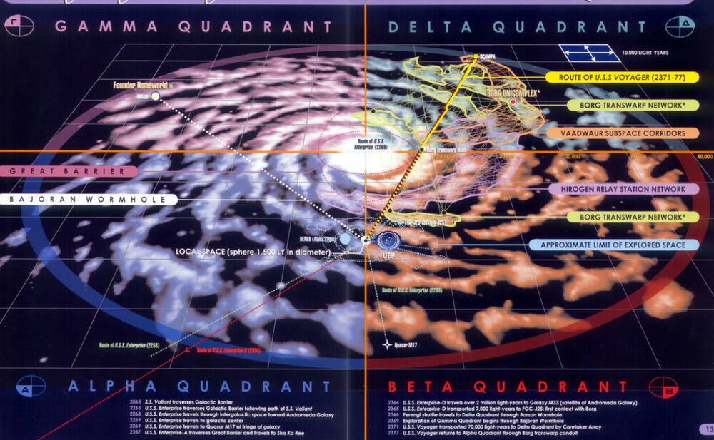 Instead of taking the most direct route to Earth, Captain Janeway and the crew of Voyager consider an alternative idea – heading for the Gamma Quadrant, and the far side of the Bajoran Wormhole. From there it would only be a short journey back to Earth! The crew debate the ideas for a while, and there isn’t a clear consensus. No starship has ever undertaken such a long journey before, so there really aren’t ground rules for route planning when it comes to long-distance interstellar travel.