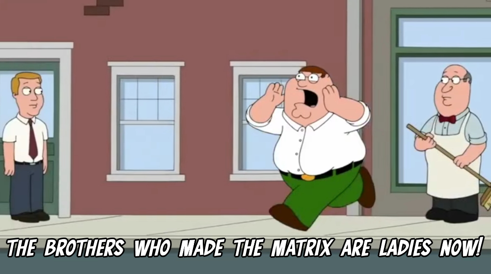Yes, there’s sci-fi fun going on. The Machines quite literally resurrected Neo and Trinity, putting them back in their shells and using them to power an new and improved version of the Matrix, one which was better and more efficient at keeping people trapped. But beyond that, there’s also the continuation of this important and inspirational trans journey.