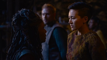 The new character of Bugs was fun; a clever riff on a character concept from previous entries in the series who felt distinct, yet familiar. There was a bit of forced drama in the conflict between Bugs and Niobe – the latter now in command of the new human-synthient settlement of Io. That particular story beat didn’t really go anywhere; Niobe was concerned about the safety of the settlement, yet it never really felt as though it were under threat nor in any danger, despite the plan Bugs, Neo, and Morpheus came up with to rescue Trinity.
