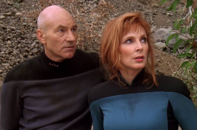There are several episodes that look at Picard and Dr Crusher’s relationship, but few are as detailed or emotional as Attached. What sounds like a silly sci-fi premise of being connected to one another by telepathic implants actually leads to a great story about the two characters and their emotional bond – a bond that has skirted friendship and something romantic.