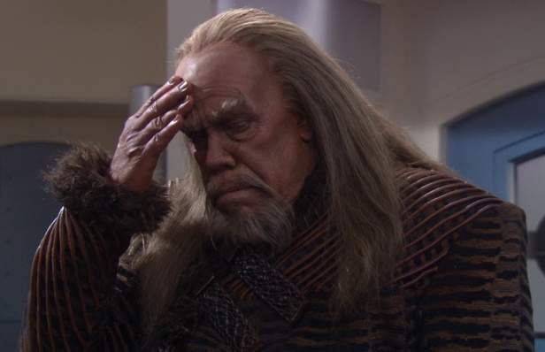 Enterprise, several years later, took this idea and ran with it, crafting an intricate (and pretty dumb) multi-epiosde arc that introduced the Klingon-Augment virus: a genetically-engineered creation that infected Klingons with human DNA, physically changing their appearances. In the writers’ minds, this “closed a plot hole,” but I would argue very strongly that it was one that never needed to be closed. Even if it did, and even if we desperately want to find a way to acknowledge the change in makeup used for the Klingons with an in-universe explanation… I just found this particular story to be convoluted and weak.