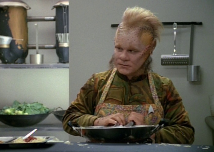 Ocampans are a very short-lived species, and Kes was either one or two years old in Voyager’s premiere. The implications of that when considering Neelix’s feelings are just unpleasant, but even if you push that to the back of your mind, there’s no getting away from the fact that Kes is basically a teenager or young adult while Neelix is in the Talaxian equivalent of middle age.