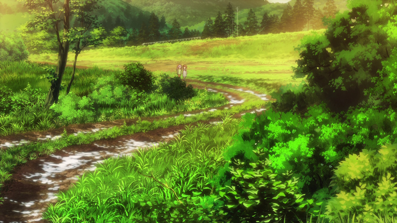 As a newbie to anime, I gotta admit that I’ve never really paid much attention to the art style – at least, not background art. Anime characters and that style of drawing and animating people has become pretty popular even outside of Japan, and while I’ve never *disliked* it, it’s not something I really spent much time at all thinking about. I was even less familiar with the way anime shows like Non Non Biyori represent their environments… and I was blown away by some of the vistas in the show.