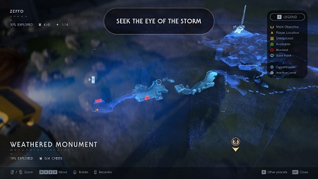 I found Jedi: Fallen Order’s holo-map clunky, unwieldy, and difficult to use. I appreciate that it’s “lore-accurate,” very closely resembling projections that we’ve seen droids like R2D2 make elsewhere in the Star Wars franchise, but its design really got in the way of its utility – at least for me. The all-blue look, the 3D design, and large, expansive levels all came together to make the map hard to use, with it being difficult to pinpoint one’s location. The ability to set waypoints on the map would be useful, even if they didn’t appear outside of the map during regular gameplay, and a general overhaul to bring the map in line with maps used in other titles would be incredibly helpful.