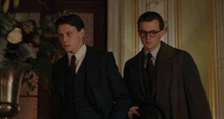 So we come to the junior civil servants, the fictional people upon whose shoulders the real story of Munich: The Edge of War was carried. I really liked the contrast between the two men – Paul von Hartmann, played by Jannis Niewöhner, and Hugh Legat, played by George MacKay. They came from similar worlds, as the scenes showing them together at Oxford University showed, but they ended up on very different philosophical and political paths, largely (but not entirely) due to circumstances beyond their control.