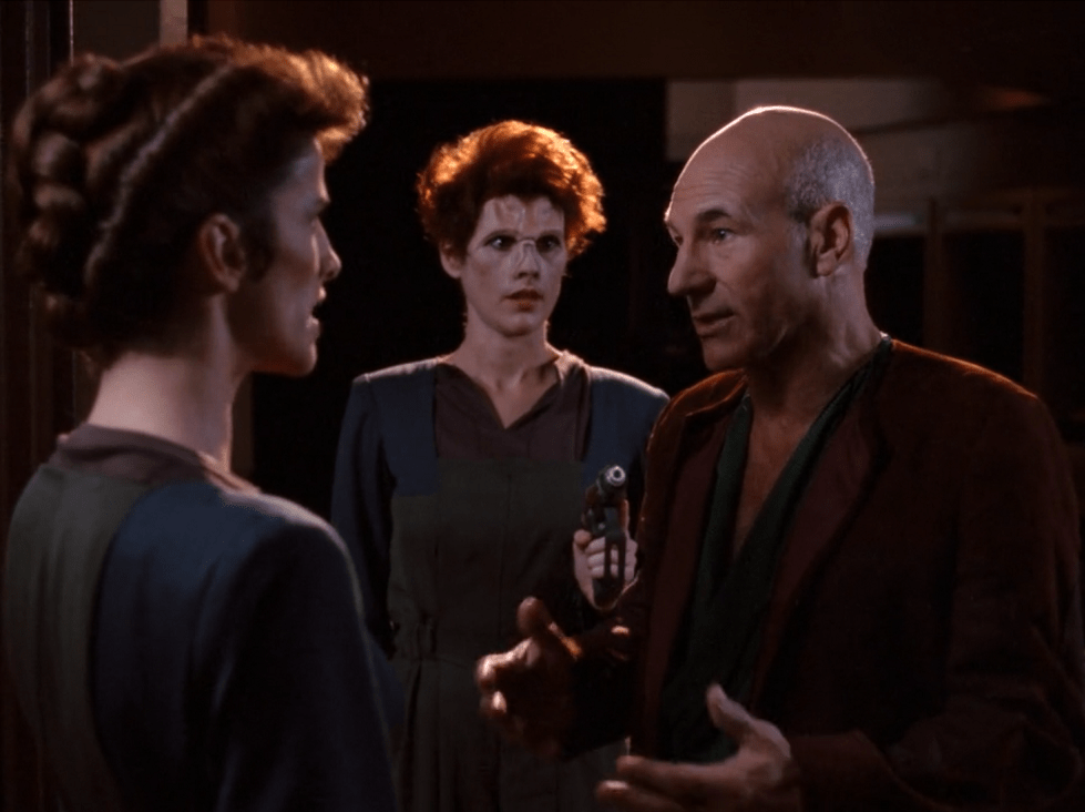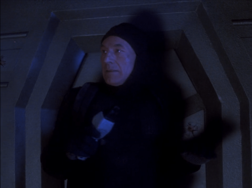 Picard finds himself trapped aboard the ship with the mercenaries while the deadly sweep slowly makes its way through the ship, and the way he is forced to deal with them, while having none of his crew or any equipment, is impressive. It shows off a side to Picard – his MacGyver-like ingenuity – which we don’t see very often.