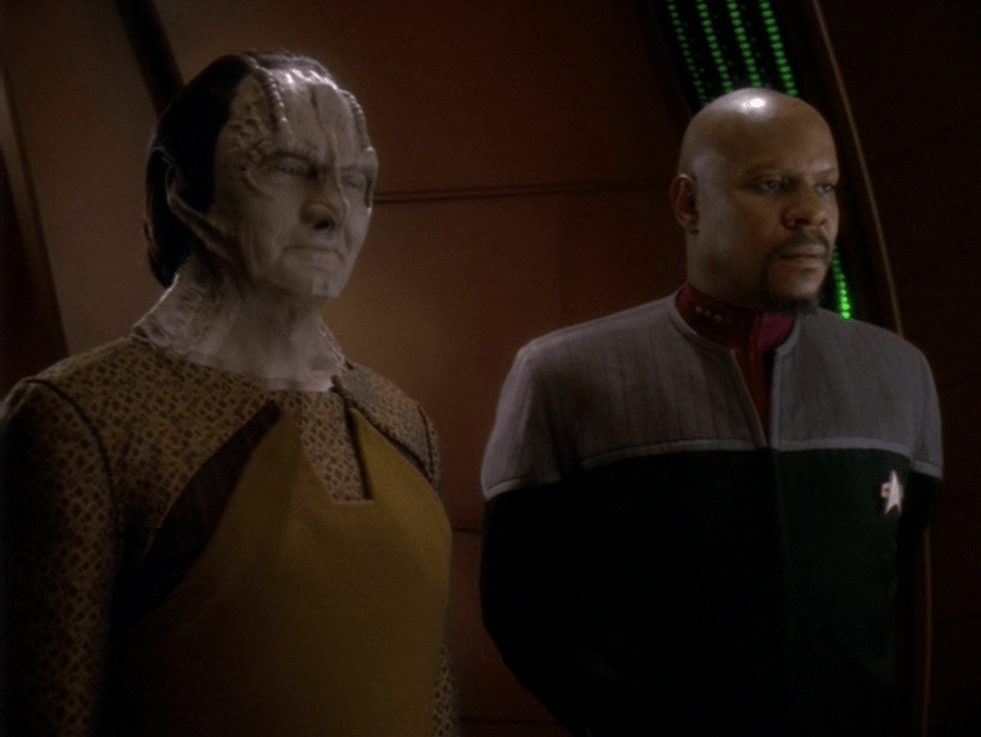 Garak and Sisko watch a faked Dominion/Cardassian meeting on the holosuite during In The Pale Moonlight.