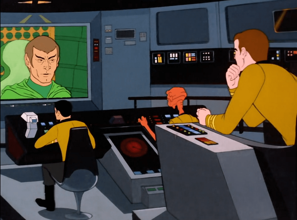 The Survivor plays out much more like a “normal” episode of Star Trek than many of its other animated outings. A rogue shapeshifter forces the Enterprise into the Romulan Neutral Zone, and of course the Romulans take the opportunity to pounce.