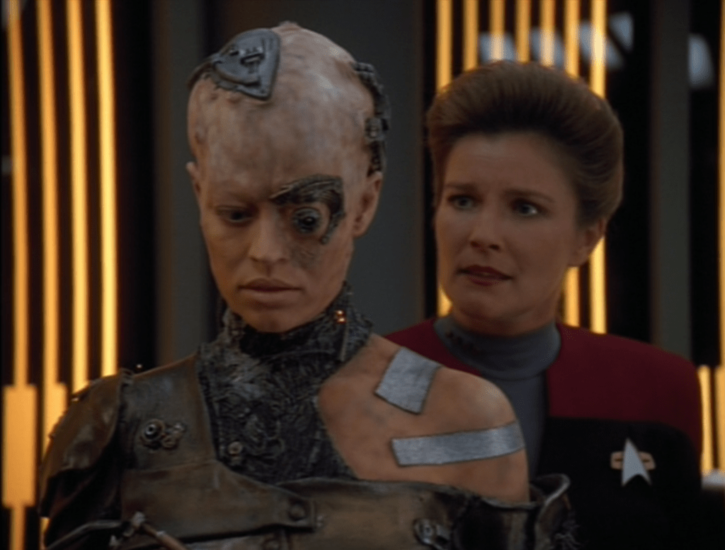 A partially de-assimilated Seven of Nine with Captain Janeway in The Gift.