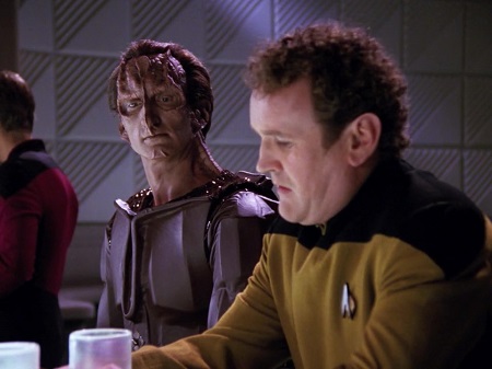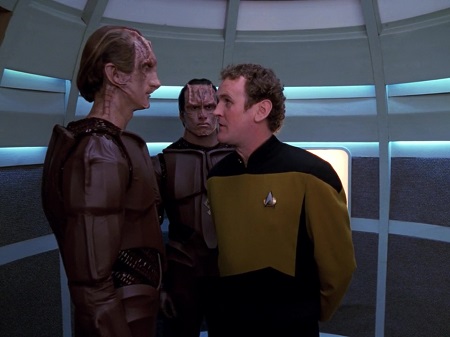 The alien power at the centre of the story will be revealed to be the Cardassian Empire – as you’ve probably already figured out from the title! The Federation colony vessel was apprehended while attempting to scout planets in a star system that the Cardassians claim as one of their own, and this will be how the Federation and Cardassians made first contact – something that has never been depicted or explained on screen before.