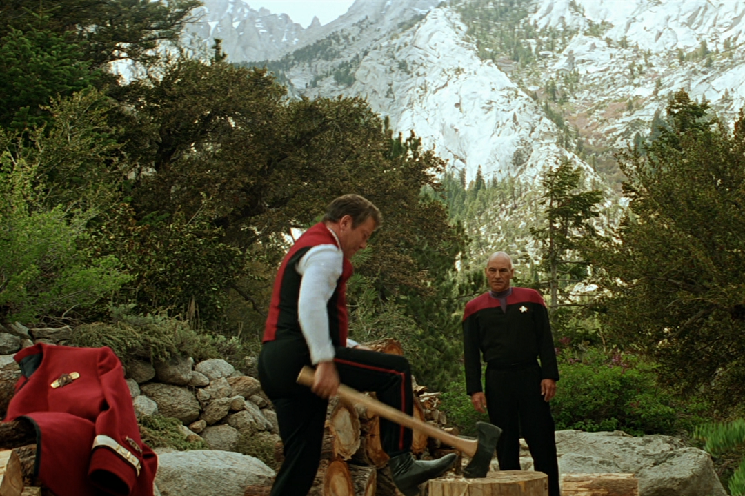 Captains Kirk and Picard meet for the first time inside the Nexus in Star Trek: Generations.