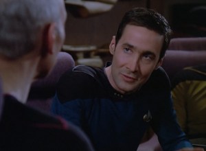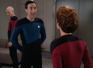 However… Man of the People doesn’t execute its ideas flawlessly, and the focus on Troi “acting out” earlier in the episode is a bit much for me. Apparently, there were issues on the production side – which led to the script being rushed and the story being bumped up the filming schedule. I daresay that’s noticeable in the finished product.