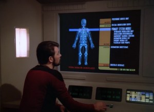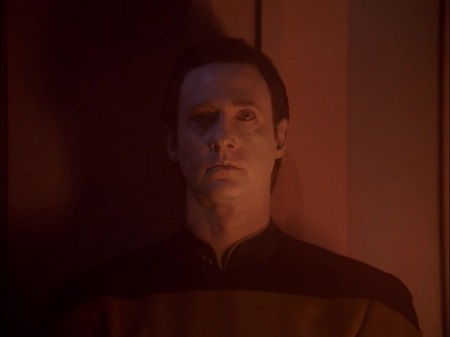 None of this, really, seems relevant to the hearing. Data’s nature is known to all parties and his defence does not depend on proving himself to be anything other than an android. But for dramatic effect it’s important, as essentially the fact that Data was man-made is the entirety of the prosecution’s case against him. Interestingly, and completely unrelated to the events of the episode, Data states that his total memory capacity is “800 quadrillion bits”. If a 24th Century “bit” is assumed to be the same as today’s computer bits, that would put his memory at 800 petabits, or 100 petabytes as there are eight bits to one byte. While this is a lot of memory, it’s not as huge as it may sound even by today’s standards. It’s roughly an order of magnitude less than the most up-to-date estimates of the size of the data stored on the internet, for example. And that’s something which is growing all the time. It is, however, much greater than the capacity of a human brain or memory – though the comparison is an inexact one as we don’t store and process memories and information in the same form. But there are computers and servers in the world today which can store as much or more information that Data can – something which would obviously have been hard to conceive when The Measure of a Man aired in 1989, before the invention of what we know of as the internet today.