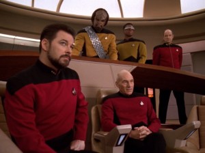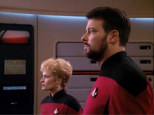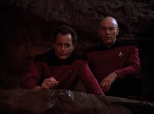 Disaster is one of my personal favourite episodes of The Next Generation. Perhaps I should do a list of those one day! It’s a bottle show (i.e. a show taking place entirely on board the ship – these were usually done to save money on building new sets) but that doesn’t mean it doesn’t tell a very interesting story – or rather, a connected series of stories. As the Enterprise-D hits a “quantum filament”, it is left without power to most of its key systems. The main crew are split up, and are forced to play different roles than they usually would.