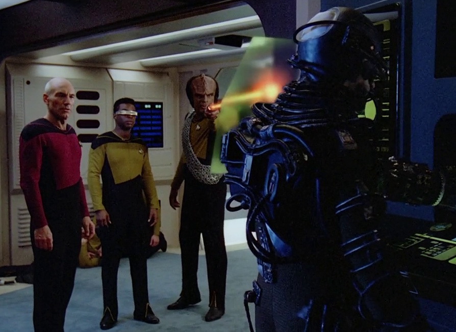 The Borg are scary. They’re “space zombies,” as I wrote once, and part of what makes them so frightening is that every ally lost to assimilation becomes another enemy to fight. The Borg also embody the idea of a “fate worse than death;” losing one’s mind, being turned against one’s friends and allies, and continuing to exist in a kind of limbo state. But think about it… have any Borg episodes really fallen into the “horror” genre?